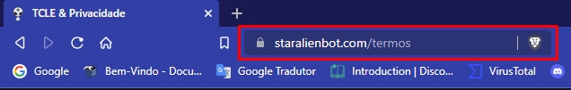 O campo mostra a URL para esta página:https://staralienbot.com/termos. (Seu navegador pode esconder o HTTPS até que você faça duplo clique no campo).